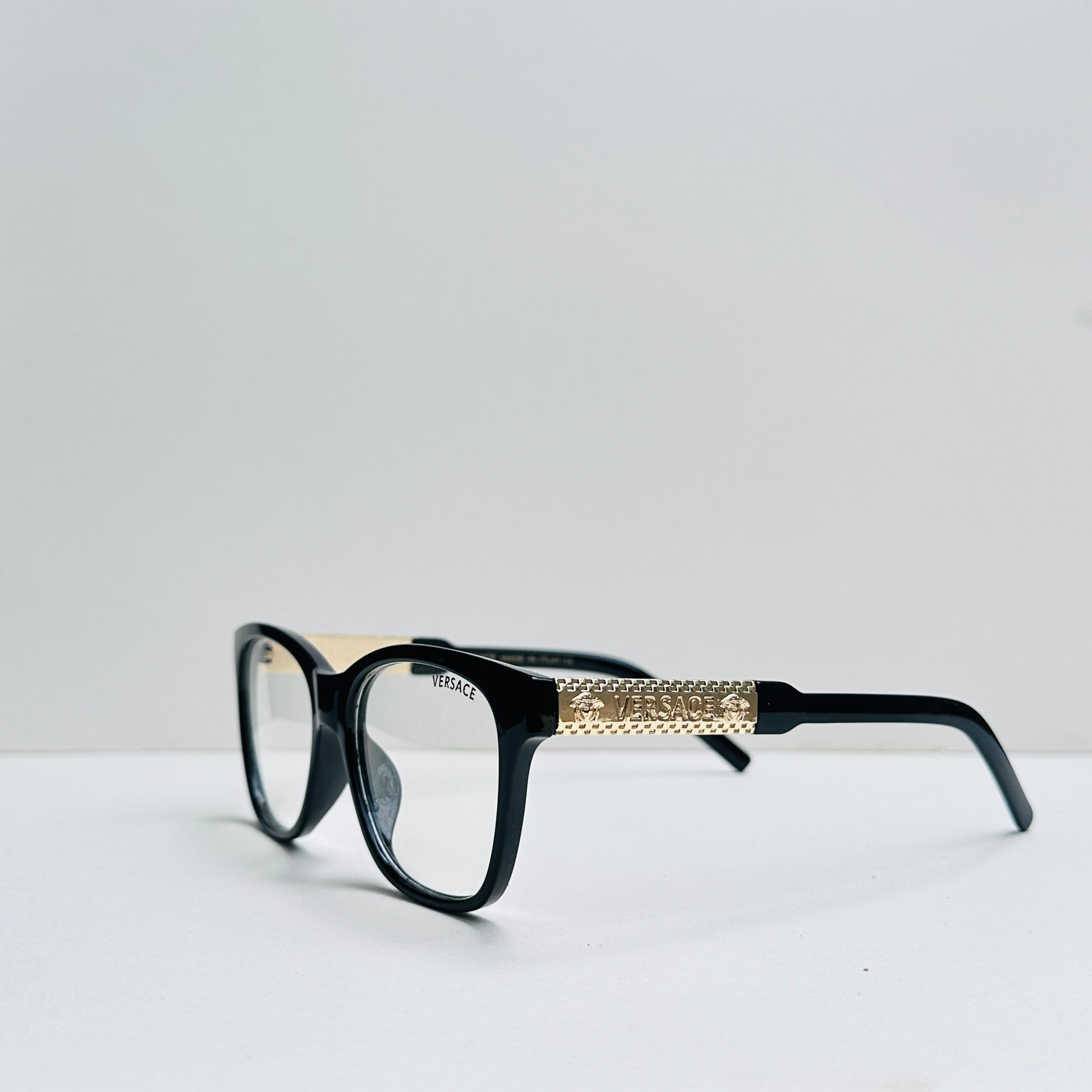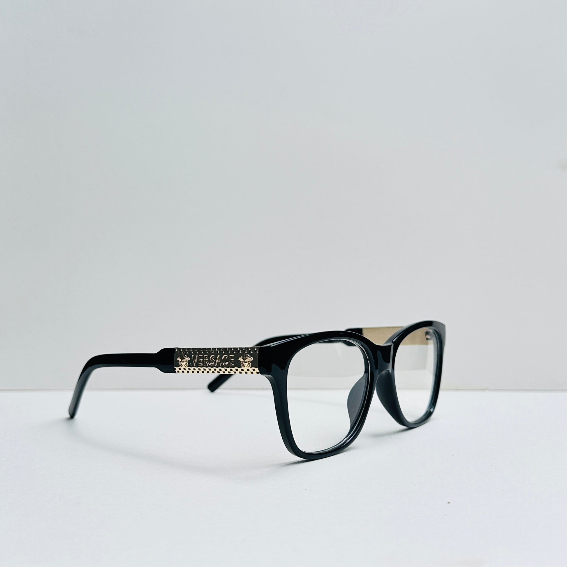 Putting together what these models share, here’s a description of what you can expect from Versace rectangular black eyeglasses: